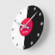 Elegantes puntos de color gris plateado real sobre reloj de pared blanco y negro. El texto se puede personalizar. ¡Este reloj es un regalo maravilloso!