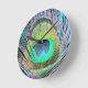 Reloj Redondo Mediano Feather de pavo real sobre turquesa