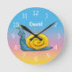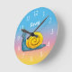 Reloj de pared decorativo con caracol feliz sobre fondo de gradiente colorido. Genial como regalo para los niños pequeños.