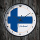 Wall Clock: Moderna Finlandia patriótica y Bandera finlandesa diseño de moda del hogar - amar mi país, viajes, vacaciones, patriotas del país / hinchas deportivos
