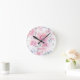 Este reloj presenta flores de acuarela rosadas y un lugar para su nombre o texto.