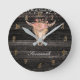 Reloj Redondo Mediano Floral de madera rústica Cow cráneo Cuernos Floral