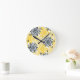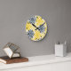 Reloj Redondo Mediano Floral moderna de carbón vegetal gris, amarillo y