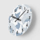 Reloj Redondo Mediano Flores azules japonesas de fondo blanco