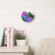 Reloj Redondo Mediano Flores de hidrangea azules y rosas