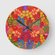 Reloj Redondo Mediano Flores de jardín soleado - Rojo Amarillo Naranja