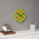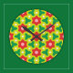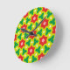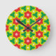 Reloj Redondo Mediano Flores Modernas sobre Floral Geométrico Verde y Ro