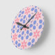 Reloj Redondo Mediano Flores rosadas brillantes y formas azules en pared