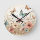 Reloj Redondo Mediano Flores silvestres y mariposas Boho