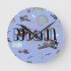 A fun colorful illustration of aviation models featuring helicopters, hot air balloons, airplanes on a dreamy blue backdrop with clouds birds and rainbows. Can be personalized. Perfect for any kid that loves the world of aviation. Whimsical fun.