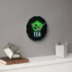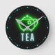 El diseño de baldosas decorativas divertidas presenta tetera verde neón con texto de neón "Tea" sobre fondo negro y cara de reloj acuático