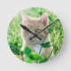 Reloj Redondo Mediano Gato jengibre con ojos verdes en la hierba