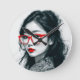Retrato negro y blanco de una dama asiática con labios y vasos rojos de color selectivo