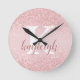 Reloj Redondo Mediano Girly Glam Rose Gold Glitter Monogram Sparkle Name