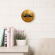 Reloj Redondo Mediano Gracioso bigote sobre fondo de textura de madera b