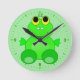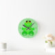 Relojes de pared para niños con un lindo personalizado de rana verde en un fondo de rayas verdes. Estos relojes con temática de rana serían perfectos colgando en la habitación de un niño o en una guardería infantil.