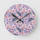 Reloj Redondo Mediano Ilustracion Floral Retro Lilac