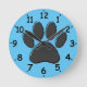 Reloj Redondo Mediano Impresión de la garra de cachorro rayada en blanco