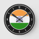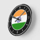 India Flag Elegant Round Clock with the India flag positioned in the middle and lovely white clock numbers on the clock edge. Delightful black background with the white oval elements finalize the design putting emphasis on the elegance. Beautiful combination of black and white with the skillful integration of the national flag colors make this clock the perfect gift and the great show piece on the wall. © 2022 CountriesOfTheWorld