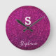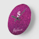 Reloj Redondo Mediano Inicial de monograma nombre purpura rosa brillo mo