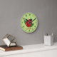 Este reloj tiene el ilustracion personalizado de Destei de una linda mariquita roja que tiene manchas negras. El color de fondo es verde claro y hay un área de texto personalizable para un nombre. La cara del reloj está hecha de números negros.