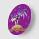 Relojes de pared modificados para requisitos particulares que ofrecen un diseño de 2 palmeras en una isla con un fondo púrpura. Éstos varan los relojes temáticos serían perfectos para su casa de playa, oficina, negocio de la playa, o patio.