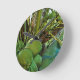 Green Coconuts Island Palm Tree Caribbean USVI Clock es ideal para disfrutar de una parte refrescante del Caribe - Jelly Coconuts on Palm Trees. Los Coconuts se cultivan en las Islas Vírgenes en árboles altos del Caribe. Cada coco tiene en el interior agua refrescante de coco para beber en un día caluroso y sabroso. La gelatina interior para comer cuando se abre es deliciosa. Nos encanta el aspecto de las texturas de las hojas y ramas de los cocos verdes Palm Tress. Disfruta de un gusto por el Caribe. Foto de derechos reservados ©Denise Bennerson, fotógrafa