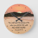 Inspiradora cita del reloj de pared de las escrituras representa una bella puesta de sol sobre el océano. Presenta la Biblia Verse Jeremiah 29:13, "Me buscarán y me encontrarán cuando ME BUSQUEN CON TODO SU CORAZÓN".