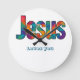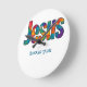 Wall clock Beautiful colorful geometric design of the name of "Jesus" loves you (personalize message or scripture or name). Great gift for Christians who love the Lord and are proud to be His. This clock is fun to give for religious celebrations, events and parties such as baptisms and summer BBQ's.