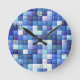 Reloj Redondo Mediano Juego de video Pixels Blue Square Pattern