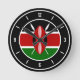 Kenya Flag Elegant Round Clock with the Kenya flag positioned in the middle and lovely white clock numbers on the clock edge. Delightful black background with the white oval elements finalize the design putting emphasis on the elegance. Beautiful combination of black and white with the skillful integration of the national flag colors make this clock the perfect gift and the great show piece on the wall. © 2022 CountriesOfTheWorld