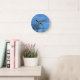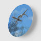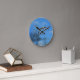 Un gaviotín muy arriba en el cielo azul con textura fina como reloj de pared