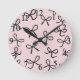 Reloj Redondo Mediano Lazos Pequeños Negros Rosados De Moda