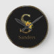 Monograma de parejas/familia hermosa con un toque dramático cuenta con letra S de doodle dorado con ramo de girasol color agua de bonito, personalizable dorado texto moderno sobre fondo negro con cara circular de reloj dorado