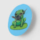 Pug verde lindo que se parece a una rana sentada en un lililipad. Se puede cambiar el color de fondo.