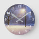 Reloj Redondo Mediano Luces de calle cubiertas de árboles de nieve