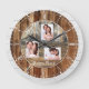 Reloj de pared con tus propias fotos favoritas enmarcadas por un diseño rústico de madera y tus textos personalizados. Si no desea utilizar las fotos, puede eliminar todos los archivos asociados del editor avanzado para revelar sólo la imagen de madera.