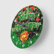 Reloj Redondo Mediano Matching Green Merry Christmas Gold Bells Greeting