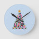 Reloj Redondo Mediano Mercado invernal 10 coloridos árboles navideños