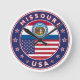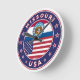Insignia de Missouri con bandera de Missouri y bandera de los colores de Estados Unidos, forma redondeada. Emblema de Misuri. Sello de Misuri. Colección de Estados Unidos.