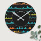 Keep track of time with this striking, modern abstract wall clock. Patterned with audio-inspired waves in cool teal and vibrant orange against a dark charcoal background, this design brings an energetic, retro-tech vibe to your any room. Versatile for the home studio, teenager's bedroom or performance space, this clock makes an ideal gift for music lovers. Personalize with a name for the finishing touch.
