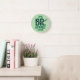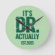 Reloj Redondo Mediano Modern Custom Dr. Name Date Dark Green Button