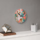 Reloj Redondo Mediano Moderno Resumen Pintura Coral Verde azulado Oro Bl