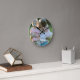 Mom Established White Script Photo Round Clock with elegant white script typography. Easy to customize. Add your photo and customize the "EST." date with the year your child was born. Add additional years for each child.