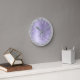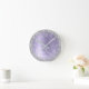 Personaliza fácilmente este diseño de reloj de pared de moda de moda con purpurina brillante de bonito plateado sobre un fondo metálico morado.
