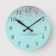 Reloj Redondo Mediano Monograma del Purpurina plateado Verde azulado azu