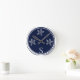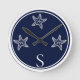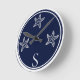 Reloj Redondo Mediano Monograma Nautical White Naval Blue Starfish Beach