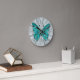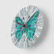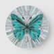 Reloj Redondo Mediano Mosaico de mariposa -verde esmeralda y gris