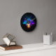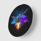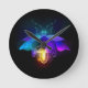 Luciérnagas mecánicas antiguas con bombilla de luz y finas alas brillan naranja, violeta, turquesa sobre fondo negro. Estilo Steampunk.