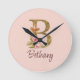 Reloj Redondo Mediano Nombre personalizado Blush rosas rosadas hoja de o